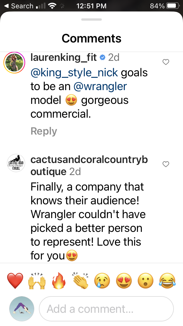 A specialized code on Lainey’s socials for her Wild Horse’s fan base drove 67% customers new to brand to Wrangler.com