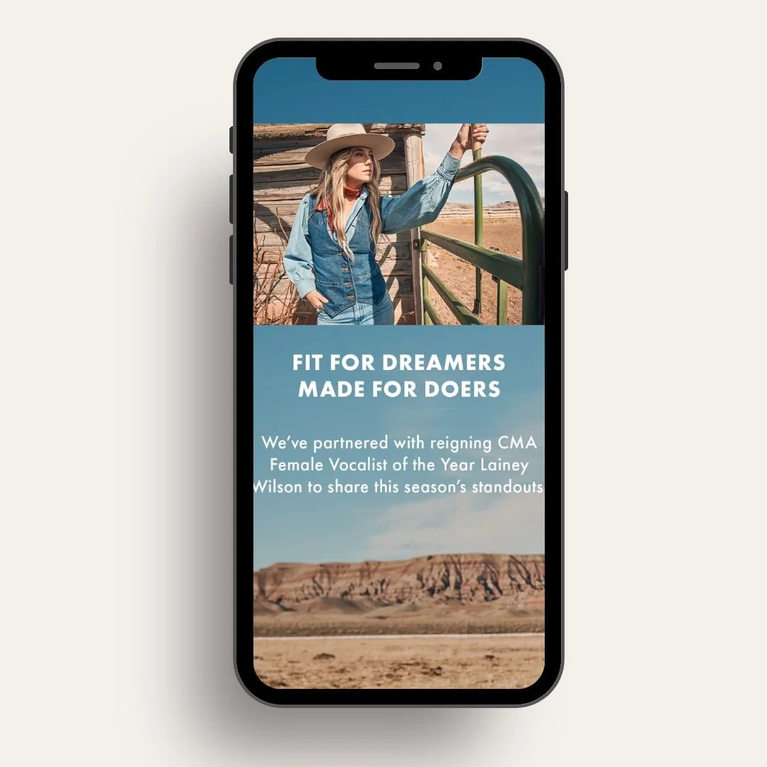 The first season in a multi-year collaboration, this Wrangler FW23 Campaign features songwriter/singer Lainey Wilson as the face of Wrangler.